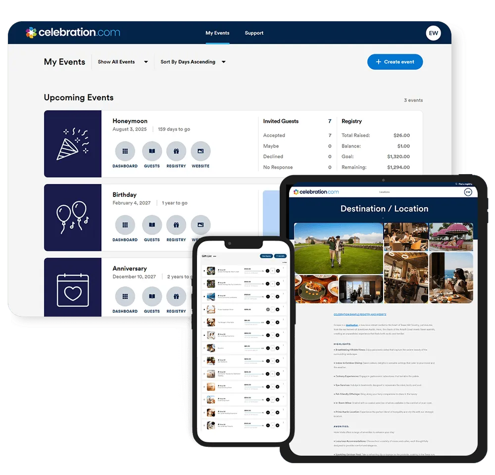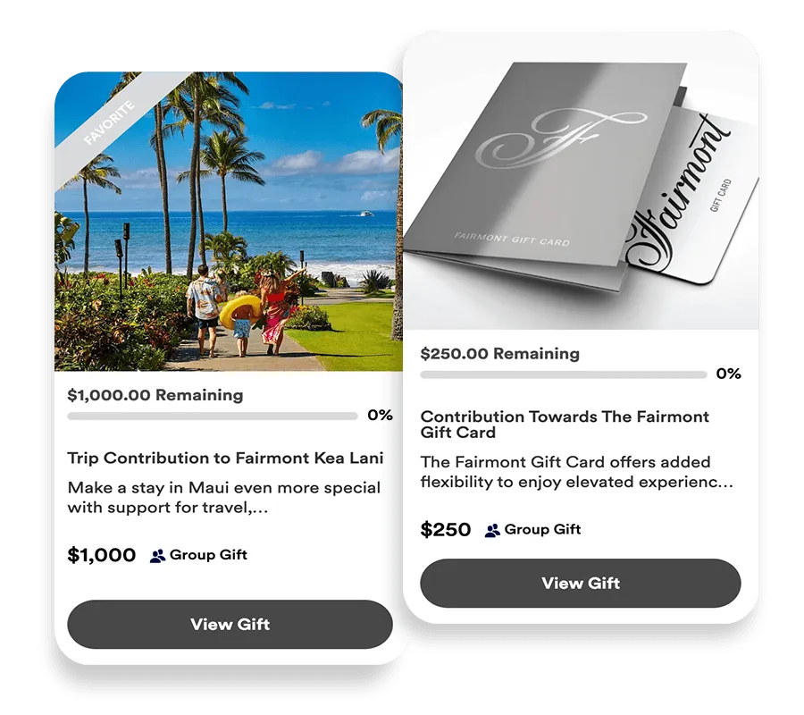 Whether you’re planning an in-person event or celebrating a special occasion with a travel experience, give loved ones the option to pay for part or all of a gift. Redeem registry funds with unique payment preferences.