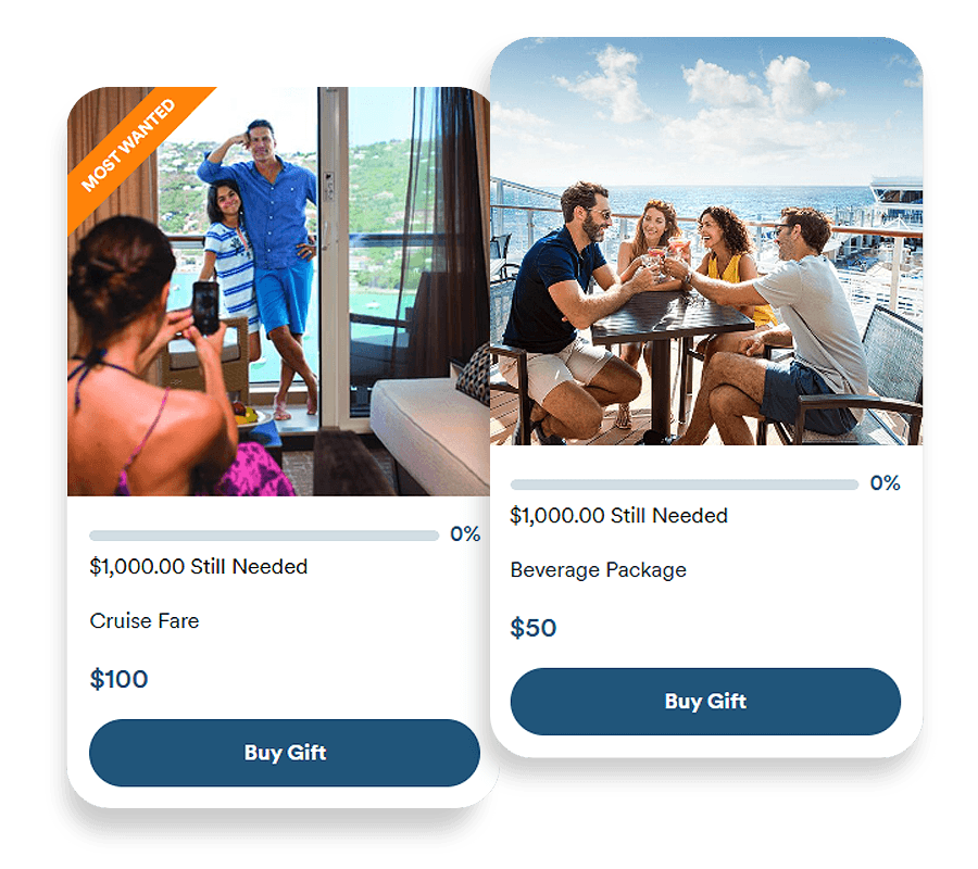 Choose from one of our customizable event websites, invitations and registries. Select real gifts and ideas from Norwegian Cruise Line to make your celebration wishes come true.