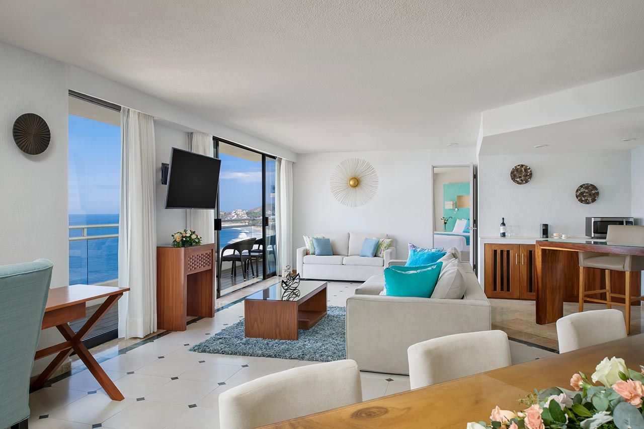 Favorite4 Available0/4Sun Club Presidential SuiteEnjoy a luxurious stay in our spacious oceanfront suite featuring a king-size bed. With 1,145 sq. ft. of space, it includes a dining table for six, a scenic balcony overlooking Palmar Bay, a small home theater with Wi-Fi, TV, DVD player, and surround sound. Sun Club amenities enhance your comfort for a maximum occupancy of 2 guests.$370